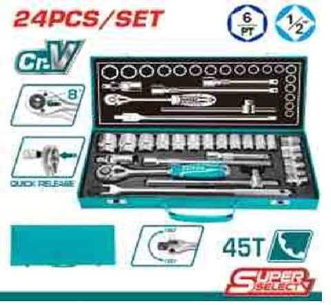 142 Pcs Combination Tools Set Include: 1/2"DR.Part: 19Pcs 1/2" Hexagonal Socket: 8-10-12-13-14-15-16-17-18-19-20-21-22-23-24-25-27-30-32MM 5Pcs 1/2" Star Socket:E10 12 14 16 20 1Pcs 1/2"Dr.Flex handle,375MM 1Pcs 1/2" ratchet wrench,45T 2Pcs 1/2" Extension bar:75mm(3") 250mm(10") 1Pcs 1/2" Dr. Universal joint 1Pcs 1/2"(F)*3/8"(M) three way adapt...