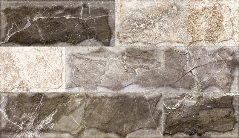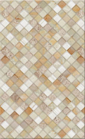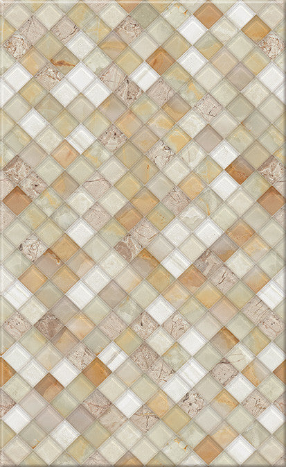 Sold By the Box ONLY 14 x 23 Ceramic Tile PEI rating: 3 Sqft per tile: 2.23 Box Quantity: 10 Finish: Glossy, Ideal for Indoor or Outdoor Walls Golden Onyx Cube Design. This dynamic Gold Onyx, brown and Ivory tiles are exquisite and unique and ideal for walls applications including kitchen backsplashes and bathroom surrounds. Add that rich han...