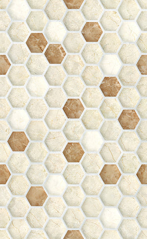 Sold By the Box ONLY 14 x 23 Ceramic Tile PEI rating: 3 Sqft per tile: 2.23 Box Quantity: 10 Finish: Glossy, Ideal for Indoor or Outdoor Walls Honey Onyx Hexagon Design. This dynamic Honey Onyx, brown and cream tiles are exquisite and unique and ideal for walls applications including kitchen backsplashes and bathroom surrounds.