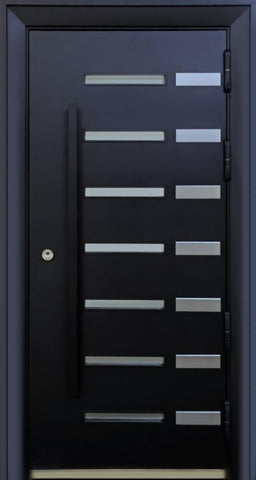 Opens Towards the Outside The hinges are on the Right Side of the Door as shown on the picture, so the door swings towards the Right Rough Opening Size: 72” x 81" Material: All Steel Security Door Steel Door Item includes Frame, Door handle & 5 spare keys We have more than 30 years of Experience in the Door Industry. We were the 1st Ma...