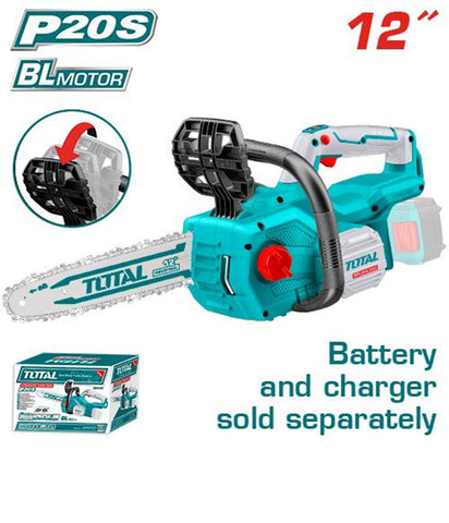 Brushless Motor Voltage:20V Bar length:12"(30cm) Chain Speed:7.9m/s Quick Chain brake function Auto lubrication Include: 1 Pcs 12" saw chain 1 Pcs 12" chain saw bar 2 Pcs 4.0Ah battery pack(TFBLI2002) 1 Pcs charger(UTFCLI2001) Charge volts:110-120V~50/60Hz Packed by color box