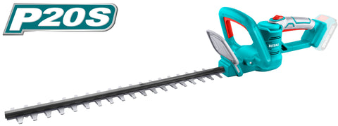 HEDGER Lithium-Ion hedge trimmer VOLTAGE 20V BATTERY & CHARGER IS NOT INCLUDED NO LOAD: 1400RPM BAR LENGTH: 18" TEETH DISTANCE: 18MM WEIGHT: 2.5KG BRAND: TOTAL