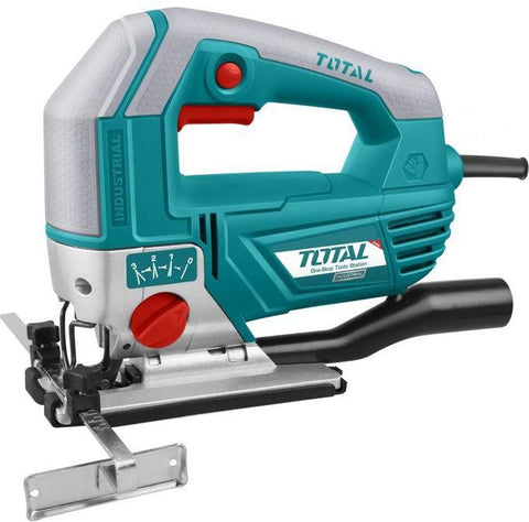 JIG SAW Voltage:110-120V~60Hz Input power:800W No-load speed:800-3000rpm Cutting capacity: Wood:4" Steel:3/8" 4 step pendulum function Aluminum base With 5pcs saw blades
