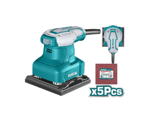 Voltage:110V-120V~60Hz Input power:320W No-load speed:14000rpm With 5pcs sand paper Bottom base:180mmx90mm Aluminum durable base Packed by color box BRAND: TOTAL Finishing sander