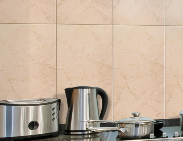 Sold By the Box ONLY 13 x 22 Ceramic Tile PEI rating: 3 Sqft per tile: 1.9 Box Quantity: 11 Finish: Glossy, Ideal for Indoor or Outdoor Walls Crema Marfil marble Circle Design adds elegance to kitchen backsplashes or bathroom walls.