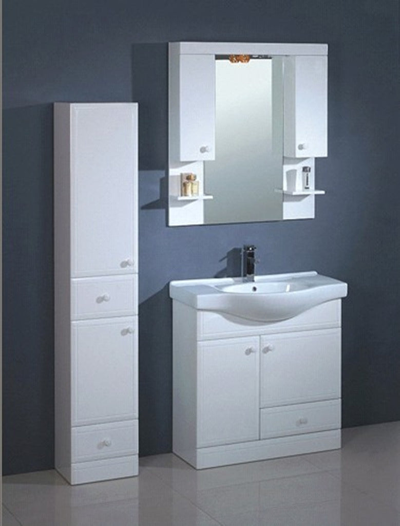 1) Size: cabinet + basin: 800*460*560mm, mirror cabinet: 800*800*150mm; 2) Material: MDF cabinet + ceramic basin + mirror cabinet + MDF side cabinet; 3) Structure: two doors; 4) Finishing: melamine; ...