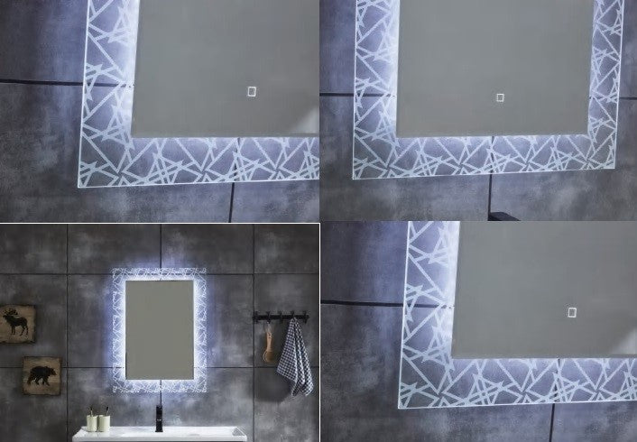 Approx. size: 36" (W) X 21" Shelf Material: Tempered Glass Top: Tempered Glass Sink: Tempered Glass, Fabricated into the Top. Shelf Brackets and Cross bar: Chrome plated Hollow sections. Mirror: Included Faucet is NOT included