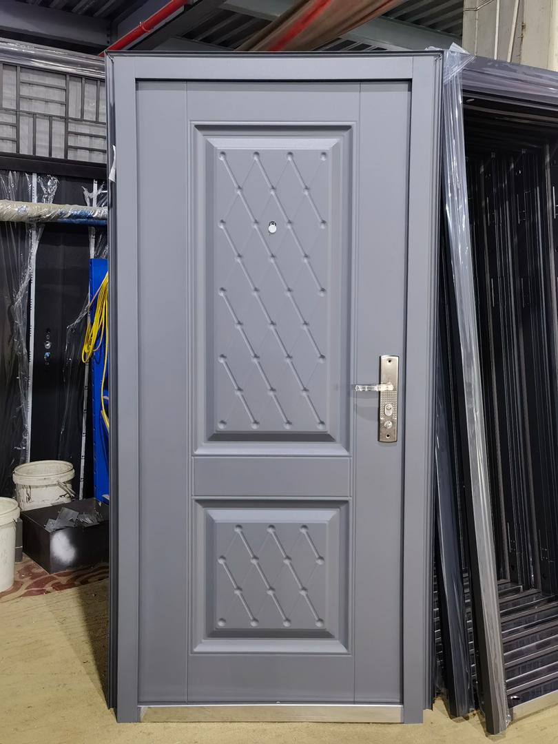 Opens Towards the Outside The hinges are on the Right Side of the Door as shown on the picture, so the door swings towards the Right Rough Opening Size: 48” x 81" Material: All Steel Security Door Steel Door Item includes Frame, Door handle & 5 spare keys We have more than 30 years of Experience in the Door Industry. We were the 1st Ma...